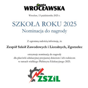 Mamy przyjemność poinformować, że nasza placówka edukacyjna została zgłoszona do nagrody w kategorii Szkoła Roku w tegorocznej edycji Plebiscytu Edukacyjnego 2025. Ponadto nominację do nagrody dla najlepszych nauczycieli otrzymali: w kategorii Nauczyciel szkoły ponadpodstawowej: Janusz Szczepankowski, Jarosław Rajczakowski, Marian Krzywonos,… Continue Reading ZSZiL nominowany do nagrody „Szkoła Roku”