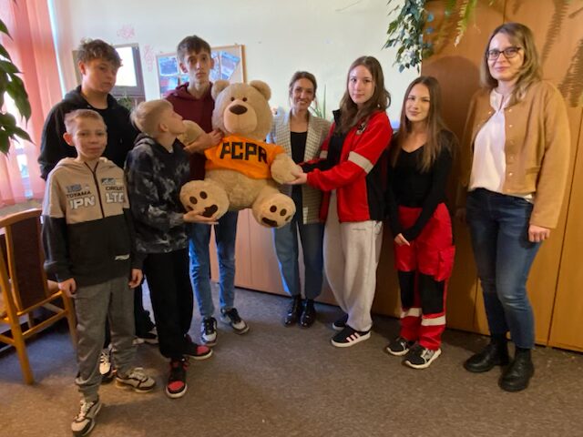 W dniu 07.11.2025 r. odwiedzili nas uczniowie z Młodzieżowego Ośrodka Socjoterapii wraz z Panią Magdaleną Karmasz i przekazali Misia, a to za sprawą SZTAFETY MISIA, która ma na celu zwrócenie uwagi na problem osób doświadczających przemocy. Akcja jest związana z Kampanią 19 dni przeciwko przemocy i krzywdzeniu dzieci i młodzieży. Symbolem kampanii jest pomarańczowa wstążka. Pomarańczowy, to kolor ostrzegawczy. Miś, który ma na sobie pomarańczową koszulkę ma do pokonania drogę po zgorzeleckich jednostkach, a jego celem jest inspiracja do działań i zwrócenie uwagi na prawa ofiar doświadczających przemocy. W dniu 12.11.2025 r. Miś wraz z pedagogiem szkolnym Panią Katarzyną Dygas-Mieszałą i uczennicami klasy 3z – Zuzanną Skrycką i Zuzanną Wiśniewską powędrował do Zespołu Szkół Ponadpodstawowych im. Emilii Plater w Zgorzelcu. Za Jego wizytę bardzo dziękujemy!