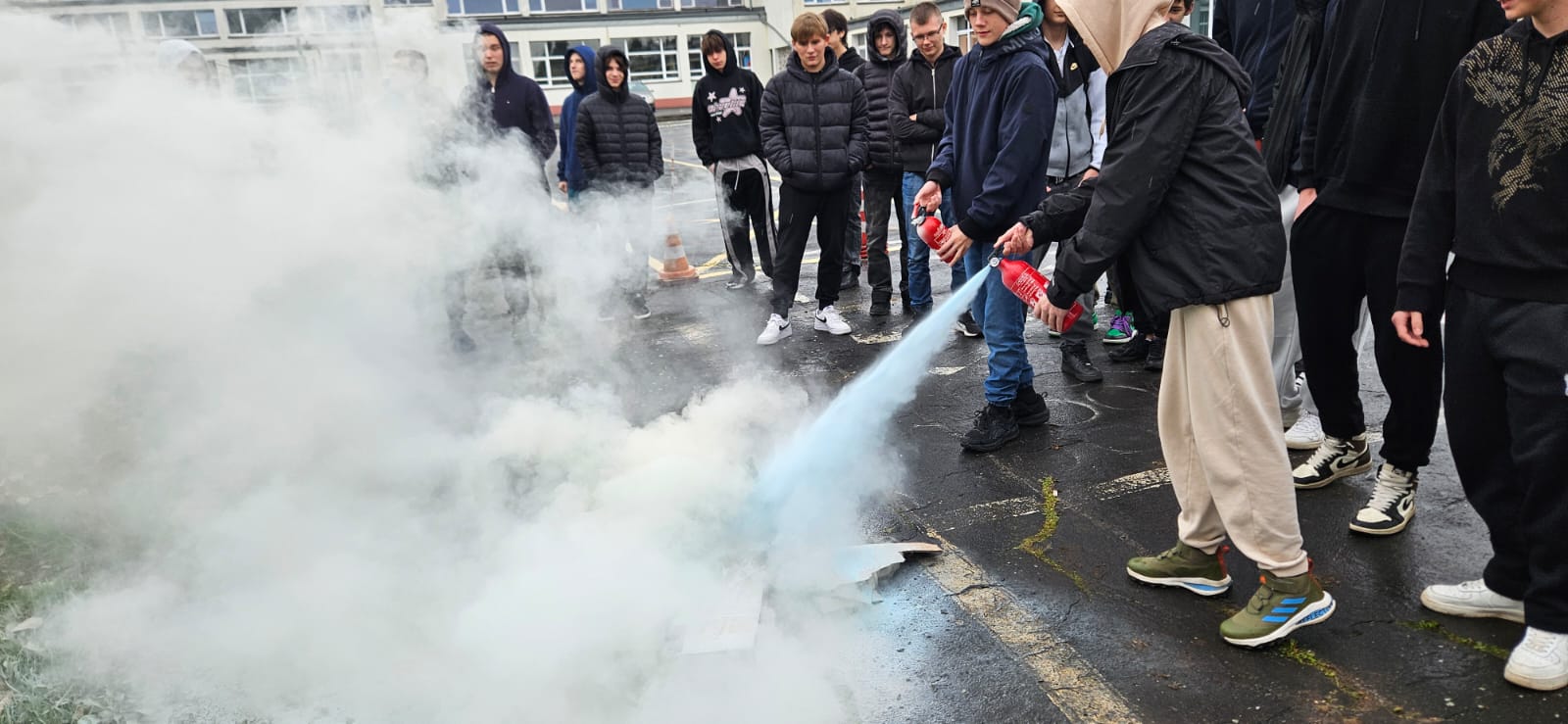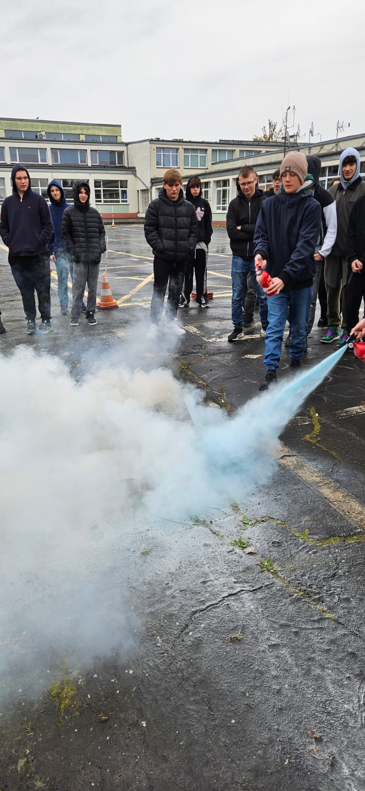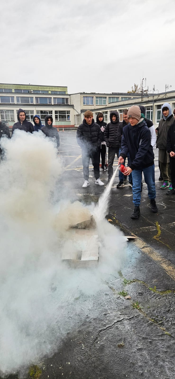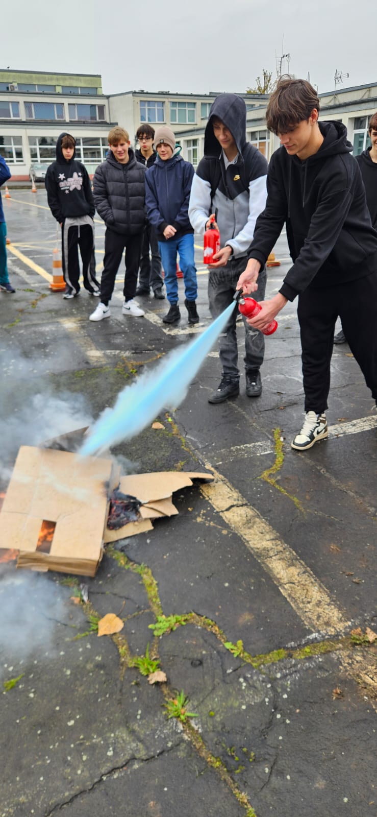 Kto w dzieciństwie nie chciał być strażakiem? Niektórym dalej to zostało. W naszej szkole można było spróbować swoich sił w gaszeniu pożaru. W ramach zajęć zawodowych z BHP uczniowie klasy 1i zapoznali się z podręcznym sprzętem gaśniczym. Szkolenie miało charakter teoretyczny jak i praktyczny. Najpierw, w sposób kontrolowany, zapalono karton z papierami, a następnie za pomocą gaśnic samochodowych próbowano go zgasić, co wcale nie było proste. Najbardziej odważni ugasili jednak pożar i wszystko skończyło się dobrze.