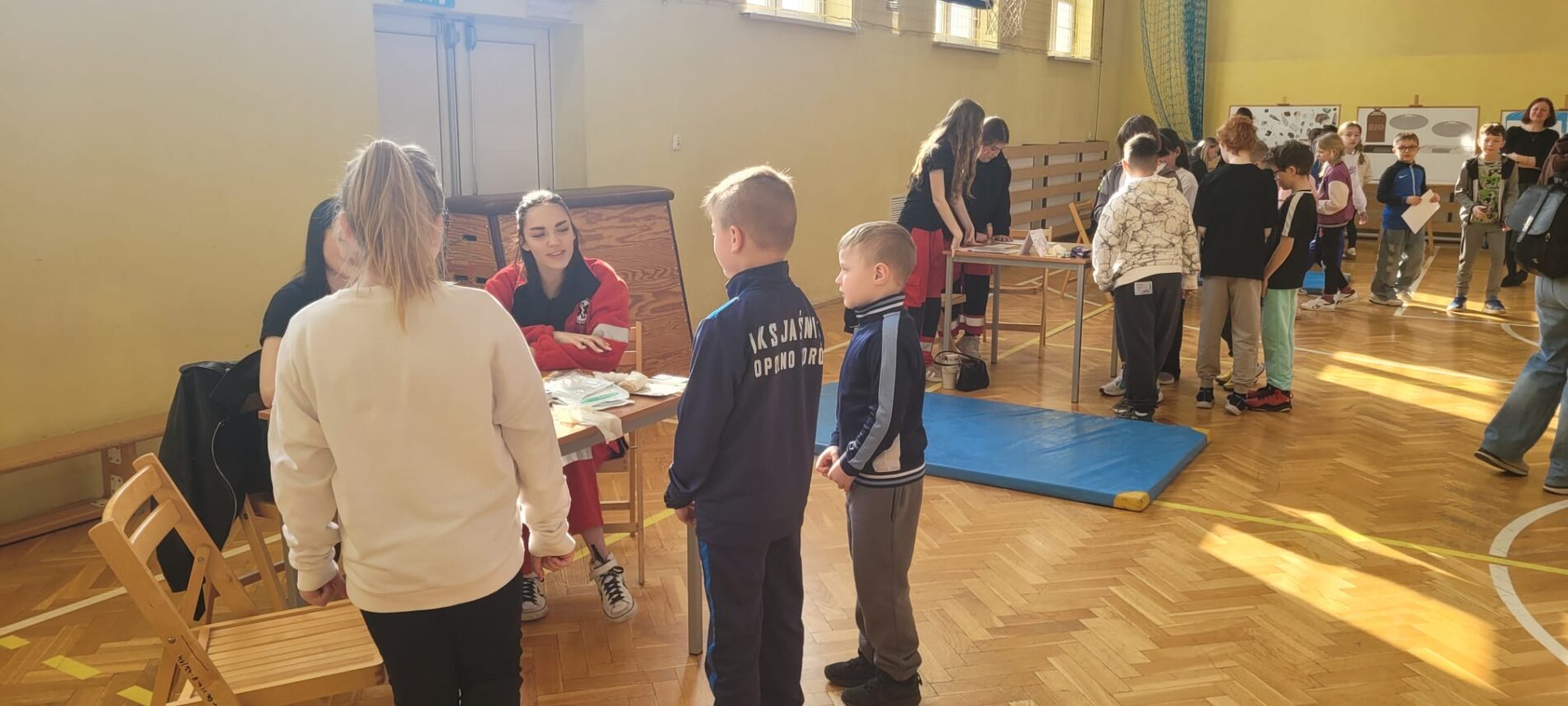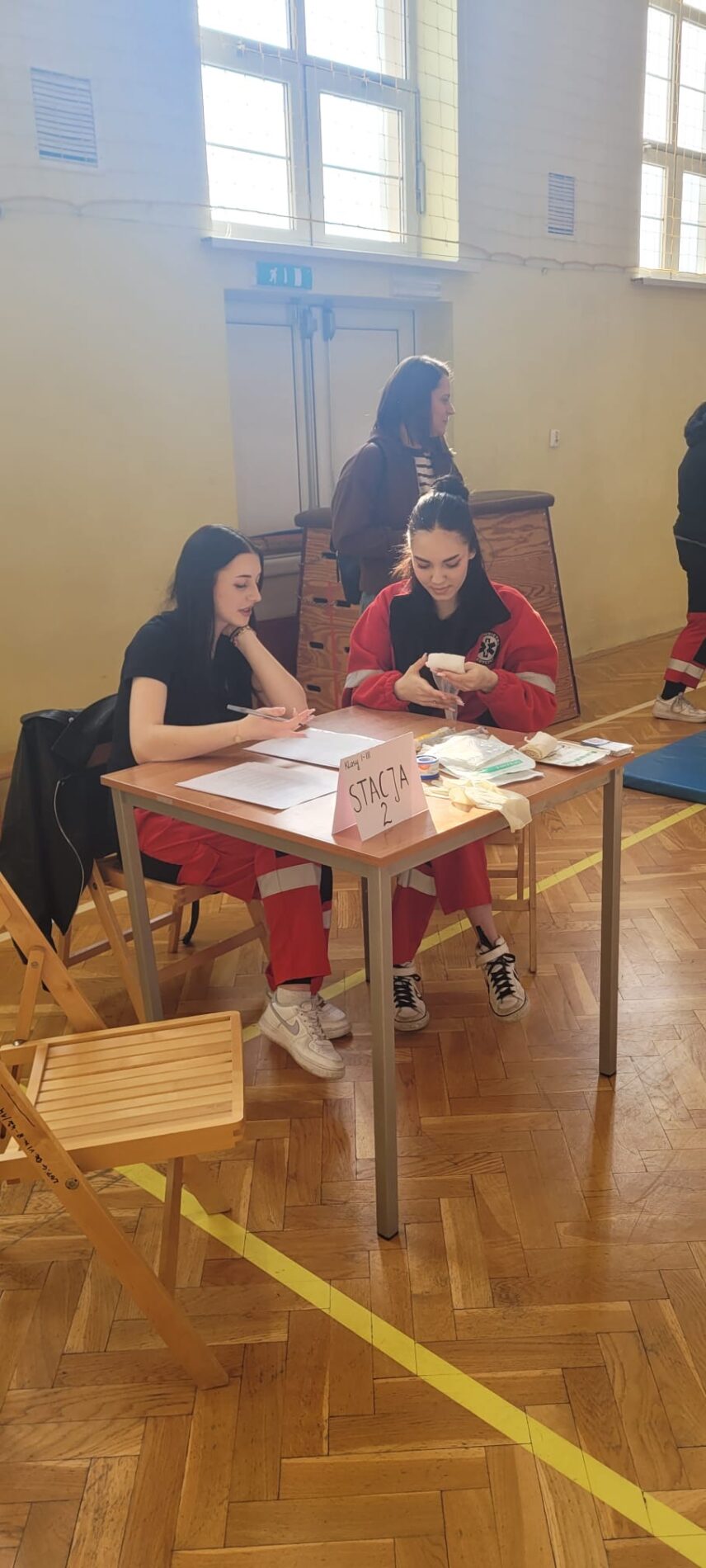 Nasze „ratowniczki” pełniły również rolę sędziów na przygotowanych stacjach zadaniowych. Uczestnicy konkursu musieli wykazać się wiedzą teoretyczną, ale przede wszystkim praktycznymi umiejętnościami związanymi z udzielaniem pierwszej pomocy i właściwym zachowaniem w sytuacjach zagrożenia zdrowia i życia.