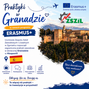 Rozpoczęcie praktyk zagranicznych w Granadzie w ramach programu Erasmus+ Z radością informujemy, że uczniowie Zespół Szkół Zawodowych i Licealnych w Zgorzelcu rozpoczęli zagraniczne praktyki zawodowe w słonecznej Granadzie, w Hiszpanii. Wyjazd odbywa się w ramach programu Erasmus+, który wspiera rozwój… Continue Reading ERASMUS+ rozpoczęty 🙂